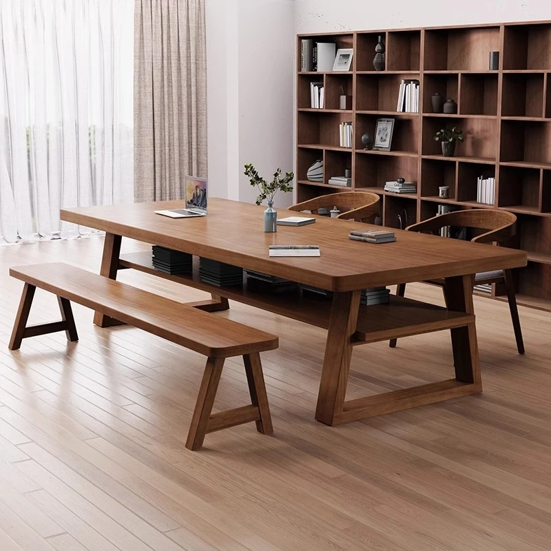 Yufei Solid Wood Large Long Desk and Dining Table - Spacious Home Living Room Table for Multiple Readers, Workstation, and Duo Study Space. Perfect for Home or Office Use.