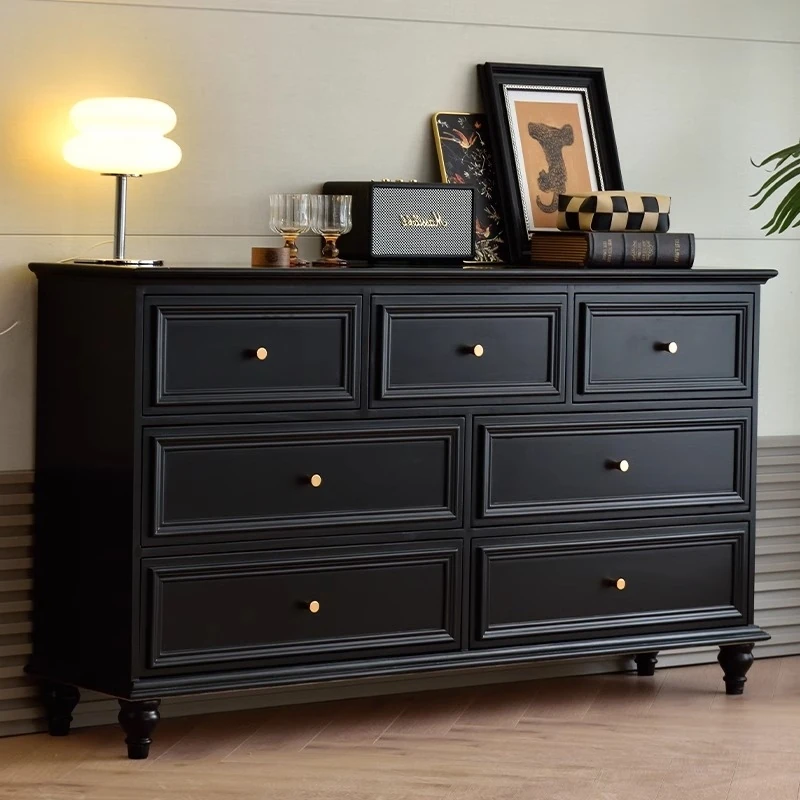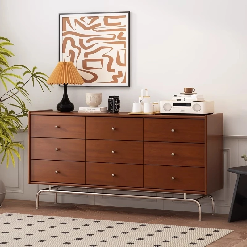 Vintage Solid Wood Nine-Drawer Side Cabinet – Stylish Storage Solution for Living Room, Bedroom, or Entryway – Perfect for Small Spaces with Ample Drawer Storage