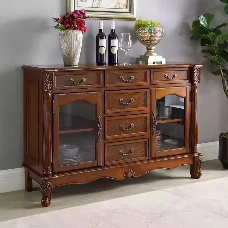 Sengbaiyu Vintage American Solid Wood Dining Sideboard – Stylish Wall-Mounted Storage Cabinet for Dishware, Teas, and Drinks - Perfect for Your Home or Restaurant!