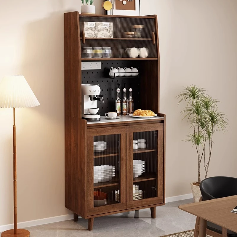 Modern Minimalist Walnut Sideboard - Elegant Storage Cabinet for Living Room and Kitchen, Perfect for Tea and Beverage Display, Solid Wood Construction, Ideal Home Organization Solution