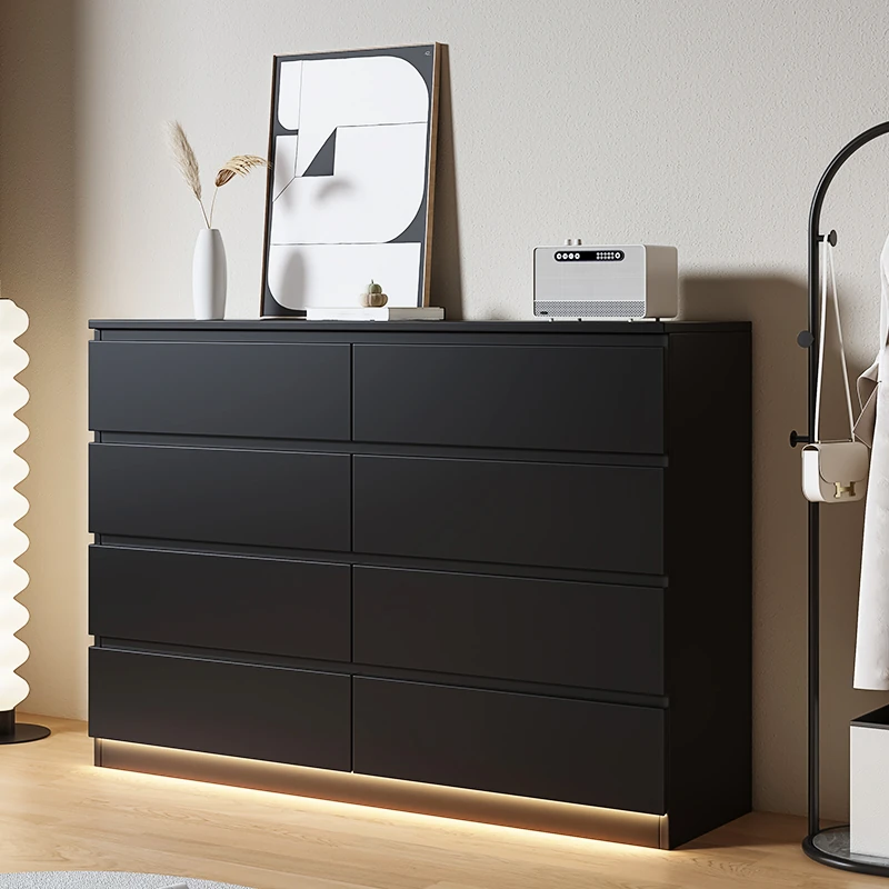 Elegant Black Wooden Wall-Mounted Eight-Drawer Storage Cabinet – Minimalist Design for Modern Living Spaces