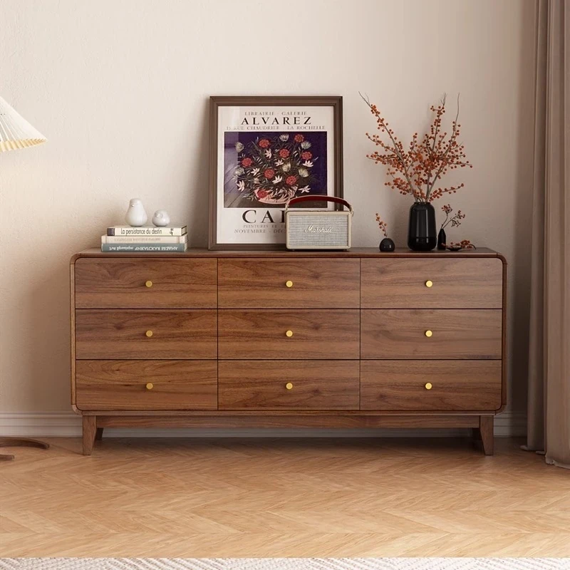 "Shengbaiyu New Chinese Style Solid Wood Nine-Drawer Cabinet - Minimalist Modern Six-Drawer Storage Solution for Bedroom with Bedside Drawers"