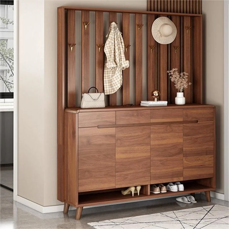 "Modern Chinese Style Solid Wood Entrance Shoe Cabinet with Large Capacity - Ideal for Home Entryway Storage and Organization by Best Choice"