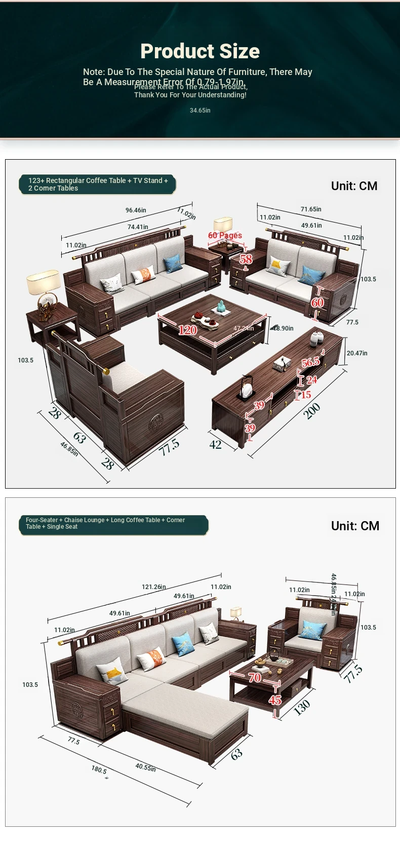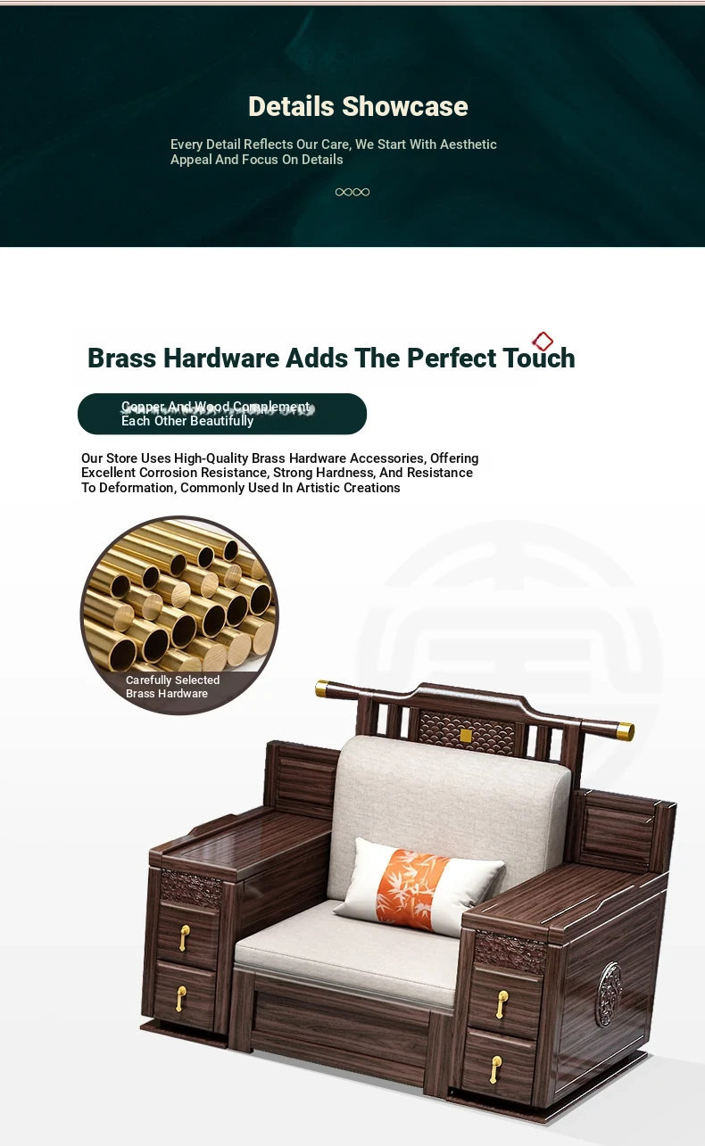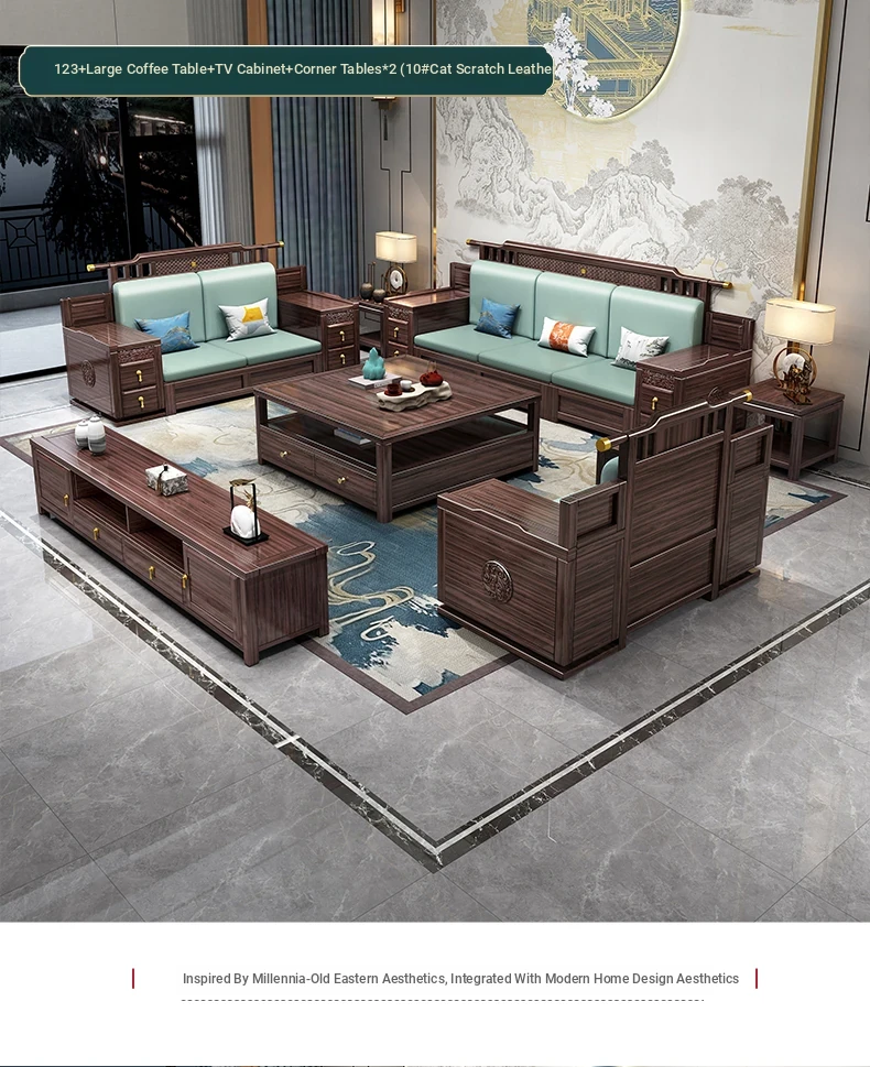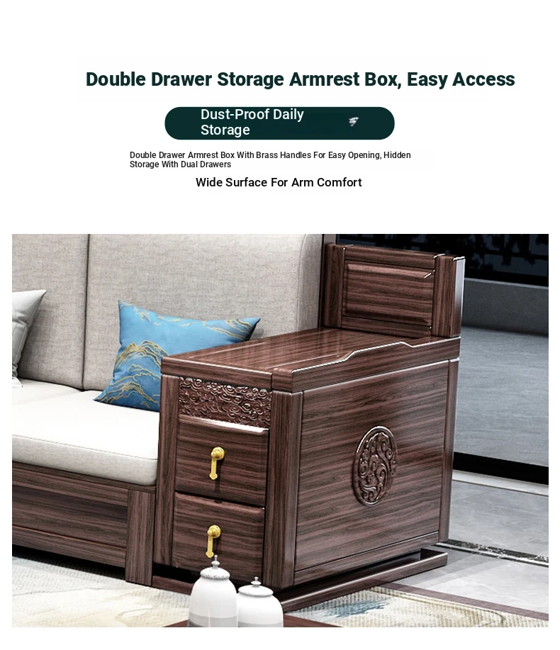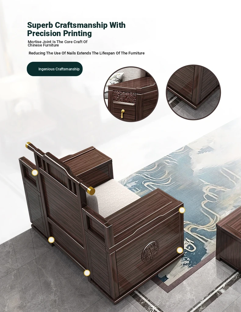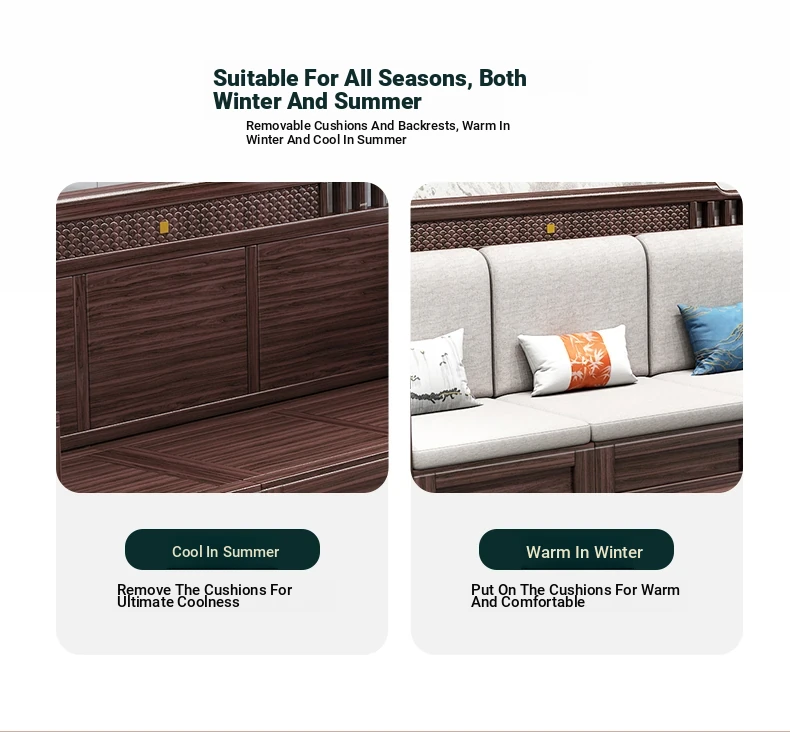 Introducing the Wopai New Chinese Style Solid Wood Sofa Set: A Modern Minimalist Design in Elegant Dark Hardwood. Ideal for Year-Round Comfort, This Versatile Living Room Furniture Features Ample Storage Solutions. Perfect for Contemporary Homes!