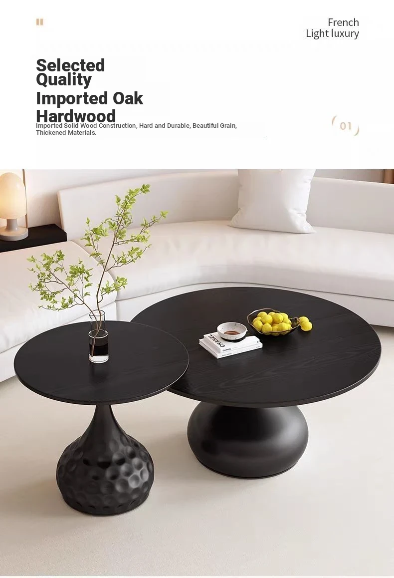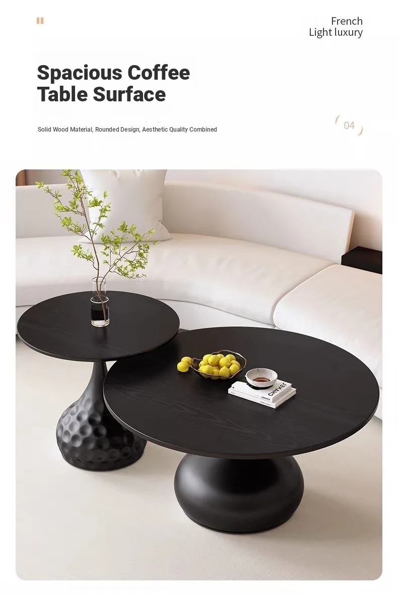 Nordic-Style Solid Wood Coffee Table – Modern Minimalist Round Table for Living Room, Complete Set, Trendy Design, Perfect for Home Décor