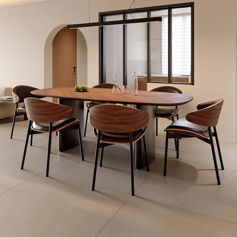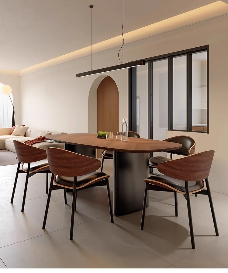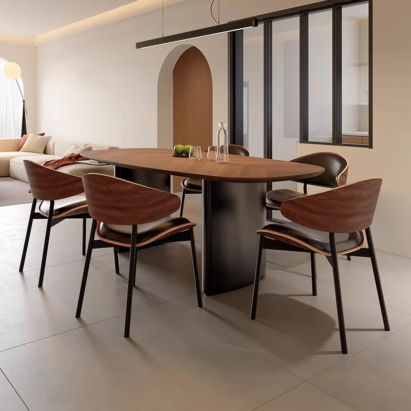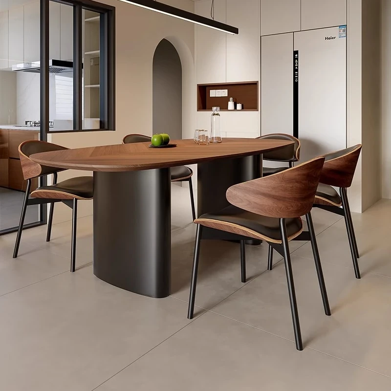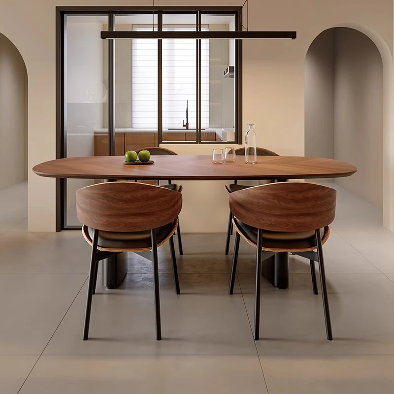Wenno French Vintage Solid Wood Dining Table and Chairs Set – Modern Minimalist Designer Oval Home Table in Scandinavian Style